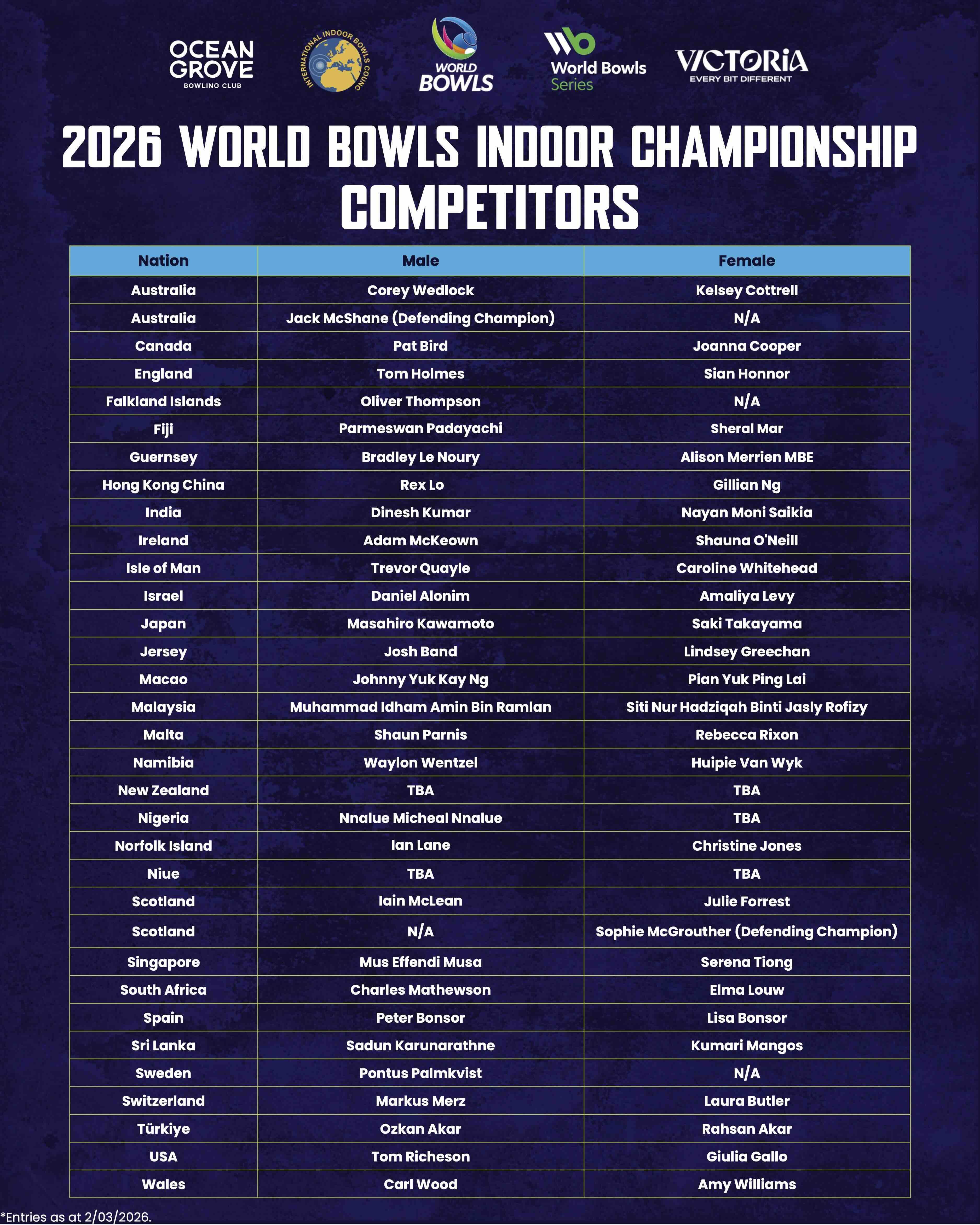 Experience world-class sport on the stunning Bellarine when the 2026 World Bowls Indoor Championship comes to Ocean Grove Bowling Club this May. Co-sanctioned by World Bowls and the International Indoor Bowls Council, this prestigious six-day event will bring elite indoor bowlers from more than 32 nations to compete in one of the world’s most advanced undercover bowling venues.